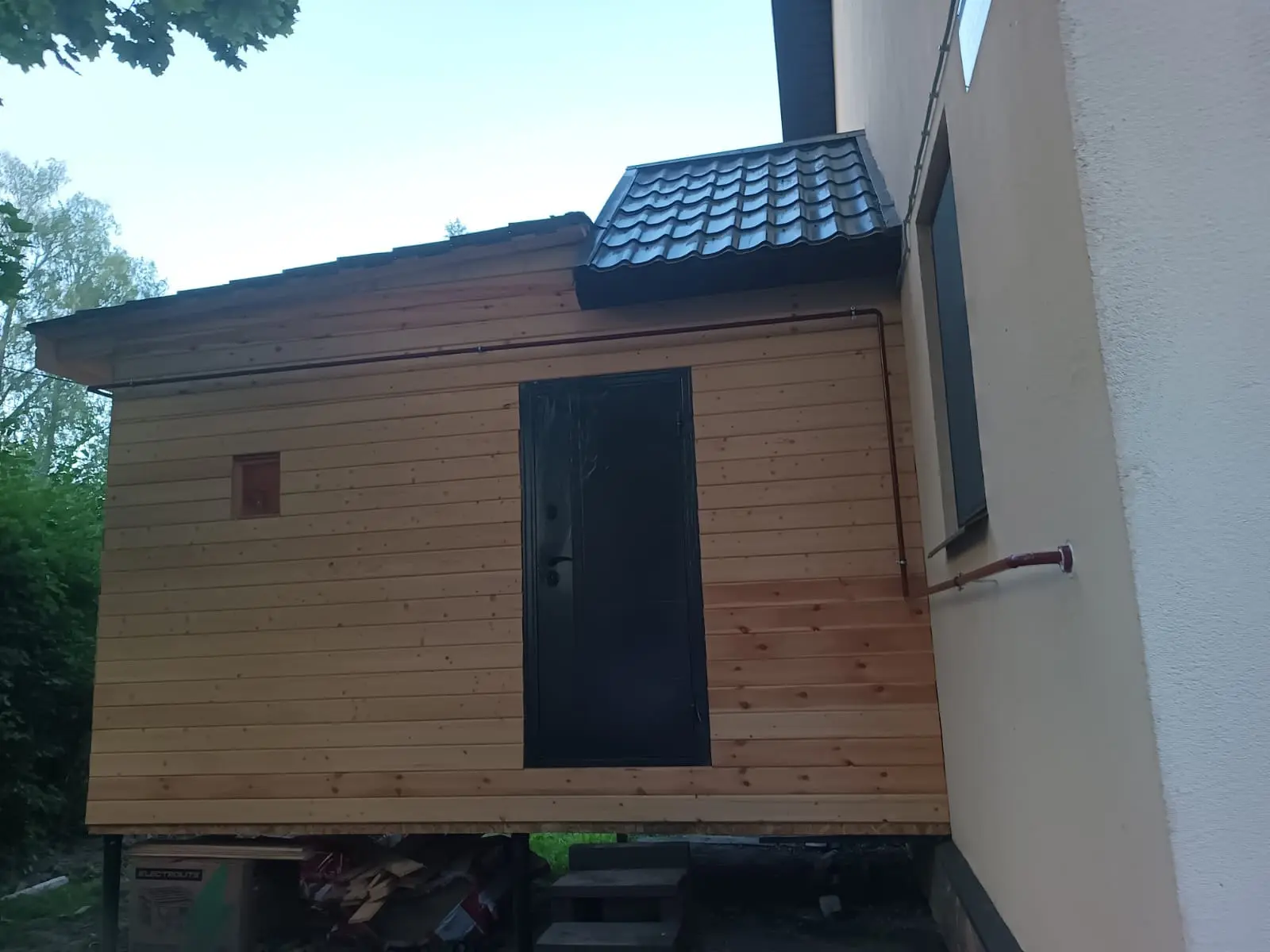 - Стены: Дерево